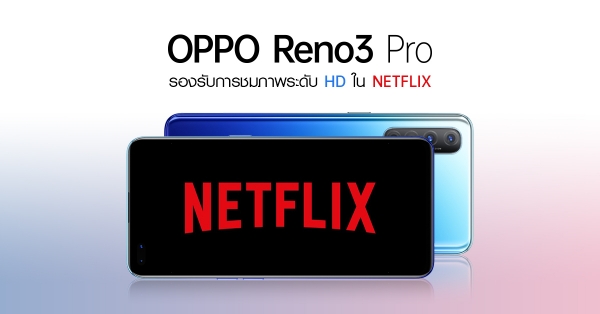 OPPO แบรนด์สมาร์ทโฟนชั้นนำระดับโลก ประกาศการเข้าร่วมเป็นพันธมิ ตรกับ Netflix ซึ่งเป็นบริการความบันเทิงสตรี มมิ่งระดับโลก เพื่อให้ผู้ใช้ได้รับความเพลิ ดเพลินไปกับภาพยนตร์และรายการที วีบน OPPO Reno3 Pro ได้ โดยจากการร่วมมือกับ Netflix ใน OPPO Find Series รุ่นล่าสุด เป็นความพยายามจากทาง OPPO ในการนำประสบการณ์ภาพที่ทันสมั ยมาสู่ผู้ใช้มากขึ้น และเพื่อมอบประสบการณ์เสี ยงและวิดีโอความบันเทิงที่ดีที่ สุด (A/V) มาสู่ผู้ใช้ ซึ่ง OPPO ได้ใช้ความพยายามอย่ างมากในการพัฒนานวัตกรรมที่ หลากหลายบน A/V เพื่อพัฒนาซอฟต์แวร์และฮาร์ ดแวร์ของ OPPO Reno3 Pro โดยการรับรอง Netflix HD ด้วยการรับชมวิดีโอระดับ HD นั้น พร้อมใช้งานผ่านแอป Netflix ที่ติดตั้งให้แล้วบน OPPO Reno3 Pro ทำให้ไม่ว่าคุณจะไปที่ไหนก็ สามารถรับชมวิดีโอ HD ได้ง่ายๆ