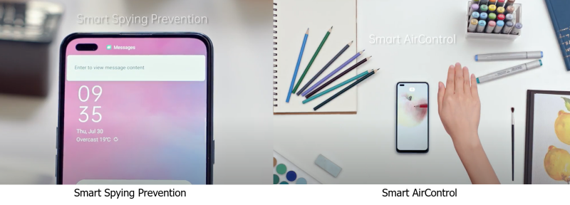 OPPO Reno4 ยังมาพร้อมกับ AI-enhanced Smart Sensor มอบความสะดวกสบายให้แก่ผู้ใช้ ไม่ว่าจะเป็น Smart Spying Prevention ปกป้องความเป็นส่วนตัว, Smart AirControl ควบคุมสมาร์ทโฟนแบบไร้สัมผัส ทั้งการเลื่อนหน้าจอขึ้นลงหรือรับสาย, Smart Rotation หมุนหน้าจอให้สัมพันธ์กับทิศทางของผู้ใช้ และ Smart Always-on Display ป้องกันการพักหน้าจอขณะใช้งาน
