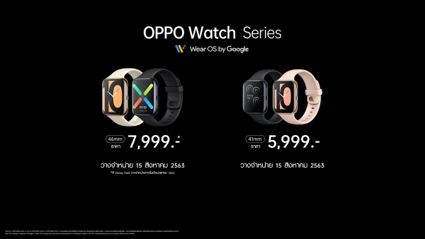 OPPO ประกาศเปิดตัว OPPO Watch Series ผลิตภัณฑ์ Smartwatch ครั้งแรกจาก OPPO ภายใต้สโลแกน “เชื่อมต่อทุกไลฟ์สไตล์ที่เป็นคุณ” โดย OPPO Watch Series ถือเป็นผลิตภัณฑ์ที่มีความผสมผสานระหว่างดีไซน์แฟชั่นและเทคโนโลยีได้อย่างลงตัว ไม่ว่าจะเป็นดีไซน์ที่บางเบา สวมใส่ถนัดมือ พร้อมหน้าจอ 3D Dual-Curved Display ครั้งแรกของโลก ขับเคลื่อนด้วย Wear OS by Google พร้อมทั้งฟีเจอร์ AI Outfit แมทซ์ทุกลุคทุกสไตล์ และ Watch VOOC Flash Charging ระบบชาร์จไวที่จะทำให้คุณสนุกไปกับการใช้งานได้ทั้งวัน โดย OPPO Watch Series มีทั้งหมด 2 รุ่นด้วยกัน คือ OPPO Watch 41mm ในราคา 5,999 บาท และ OPPO Watch 46mm ในราคา 7,999 บาท พร้อมมอบความสะดวกสบายและประสบการณ์การเชื่อมต่ออัจฉริยะแล้ววันนี้
