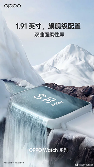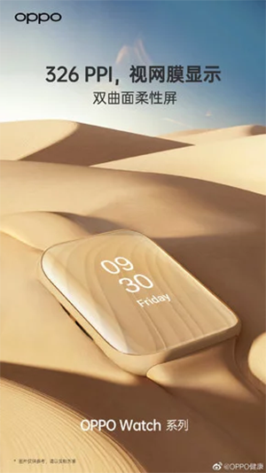 สำหรับ OPPO Watch ได้ยืนยันแล้วว่าจะพร้อมกับหน้าจอขนาด 1.91 นิ้ว พร้อมด้วยความโค้งแบบ 3D คล้ายกับหน้าจอสมาร์ทโฟนอย่าง Find X, มี 326ppi และ 100% DCI-P3