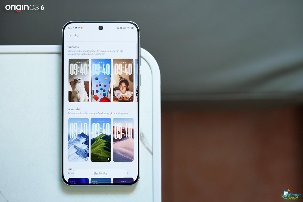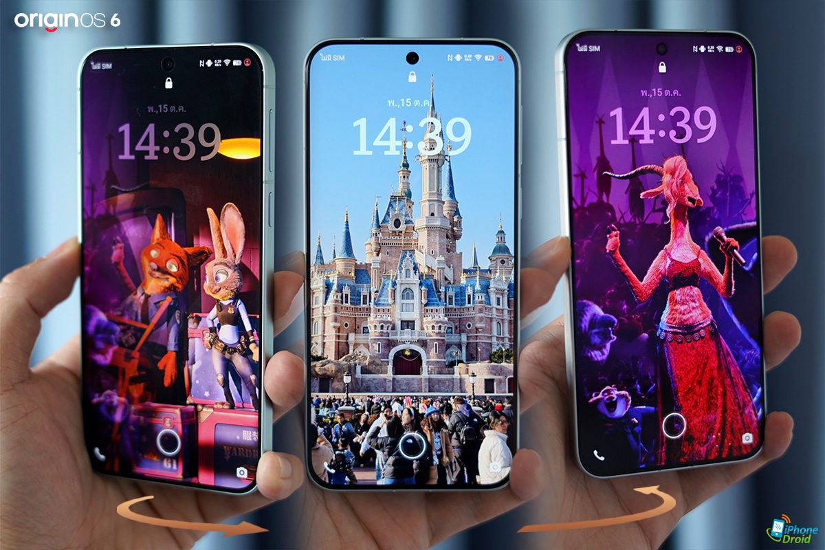 ที่น่าสนใจอีกอย่างคือธีมแบบใหม่ที่เพิ่งเพิ่มเข้ามาใน OriginOS 6 นี้เลย ในชื่อพลิกการ์ด ที่ Wallpaper จะเปลี่ยนไปได้ตามการเอียงตัวเครื่อง มีทั้งแบบเปลี่ยนภาพไปเลย หรือเป็นแบบภาพขยับไปตามจังหวะเอียงเครื่องก็ได้ อันนี้สนุกและน่าสนใจเลย