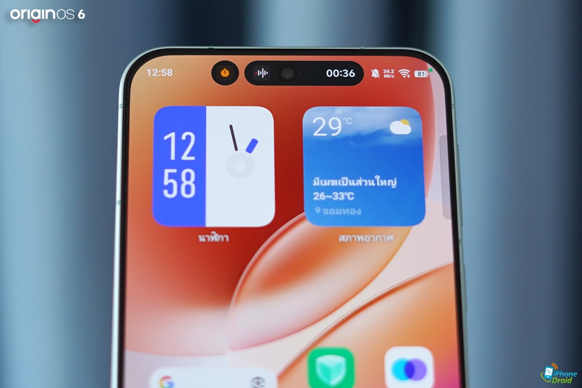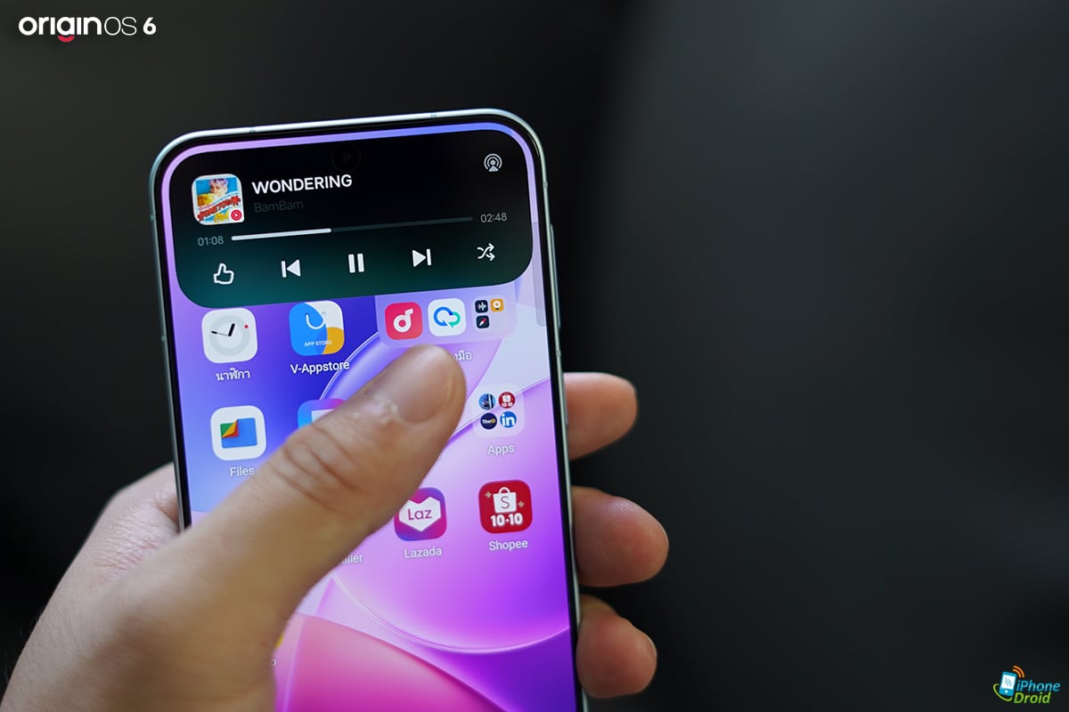 บน OriginOS 6 จะมีฟีเจอร์ใหม่ที่ตั้งชื่อว่า Origin Island หรือเกาะด้านบน เมื่อเราใช้งานแล้วรูดขึ้น ไม่ว่าจะเป็นเครื่องเล่นเพลง, การบันทึกเสียง, จับเวลา, แอปออกกำลังกาย ในที่สุดก็มีให้ใช้บนสมาร์ทโฟน vivo สักที
