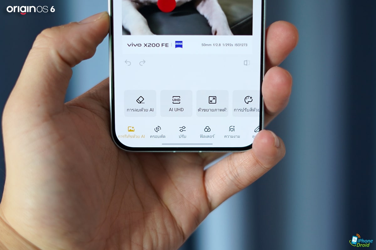 ด้านฟีเจอร์ AI ของ OriginOS 6 ในเวอร์ชั่น Global ก็จะได้มาคล้ายเดิมครับ อย่างฟีเจอร์ตกแต่งภาพจะมีรีทัชด้วย AI ที่ให้มาครบ ทั้ง การลบด้วย AI, อัปสเกลภาพด้วย AI UHD, ขยายภาพด้วย AI, การปรับสีด้วย AI แต่เท่าที่เราลองฟีเจอร์ลบวัตถุด้วย AI ในภาพ Live Photo ยังไม่มีมาในเวอร์ชั่นนี้ครับ
