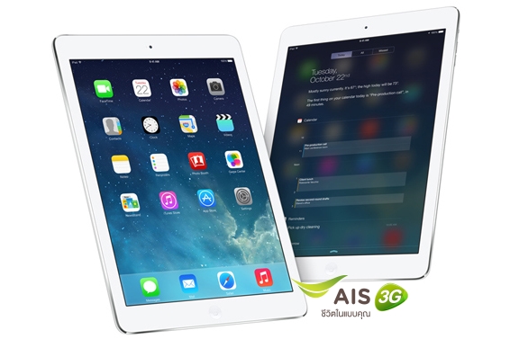 เอไอเอส 3G 2100 เปิดจำหน่าย iPad Air และ iPad mini with Retina display มอบส่วนลดดาต้าแพ็ก 50% พร้อมสิทธิพิเศษสุดคุ้มเพียบ