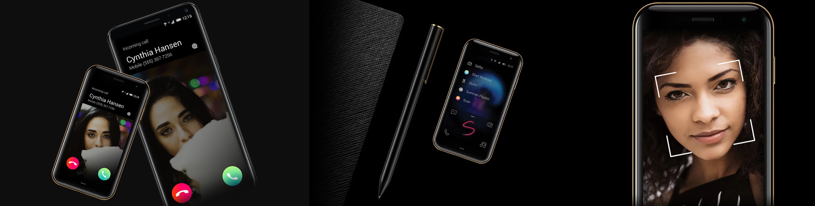 ถึงแม้จะมีขนาดหน้าจอแสดงผลที่ไม่ใหญ่โตเหมือนกับสมาร์ทโฟนทั่วไปแต่ก็มีการติดตั้งเซ็นเซอร์ตรวจจับใบหน้านั้นหมายความว่าอุปกรณ์ชิ้นนี้สามารถปลดล็อคด้วยใบหน้าได้ นอกจากนั้นยังถูกปกป้องจากกระจกนิรภัยทั้ง 2 ด้านด้วย Gorilla Glass 3 มีการติดตั้งลำโพงไว้ด้านข้าง และมีการเชื่อมต่อผ่านพอร์ต USB-C พร้อมกับระบบป้องกันน้ำและป้องกันฝุ่น IP68 มีช่องเสียบหูฟัง
