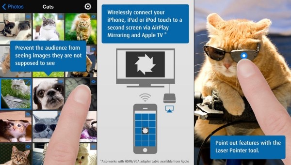 PhotoPresenter ราคา $0.99 หรือประมาณ 30 กว่าบาท แอพสำหรับนำเสนอรูปภาพผ่าน AirPlay ไปยังหน้าจอขนาดใหญ่ สามารถใช้นิ้วแตะที่หน้าจอ iPhone หรือ iPad เหมือนเป็นจุดเลเซอร์สำหรับชี้จอขณะนำเสนอ ทุกอย่างจะถูกควบคุมผ่านตัวเครื่อง iPhone หรือ iPad ทำให้การนำเสนอง่ายขึ้น โหดลกันได้ที่ PhotoPresenter