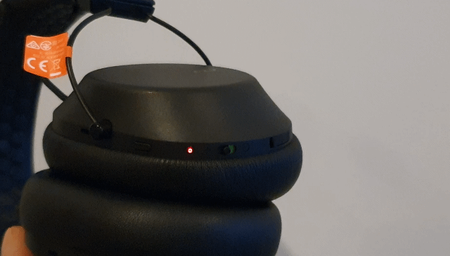 ให้เปิดปุ่ม Power หูฟังที่อยู่ด้านขวาด้วยการเลื่อน เพื่อเป็นการเปิดเครื่อง จะได้ยินเสียง Power On
