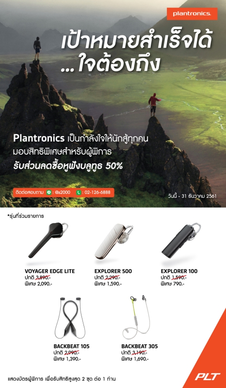 Plantronics มอบสิทธิพิเศษแก่ผู้พิการ ได้เป็นเจ้าของหูฟังบลูทูธ ในราคาสุดพิเศษ ลดสูงสุดกว่า 50%