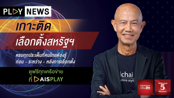 เกาะติดเลือกตั้งสหรัฐฯกับคุณสุทธิชัยหยุ่นบน PLAY NEWS ได้ฟรีทุกเครือข่าย ทุกที่ ทุกเวลา ในรูปแบบวีดิโอออนดีมานด์ บน AIS PLAY ทุกช่องทาง ทั้งแอปพลิเคชัน AIS PLAY, กล่องทีวี AIS PLAYBOX, เว็บไซต์ aisplay.ais.co.th  กล่อง APPLE TV และ SAMSUNG SMART TV