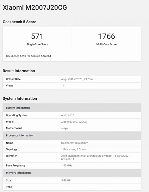 ขณะที่สเปคที่ปรากฏบน Geekbench จะมาพร้อมกับ RAM 6GB รันบนระบบปฏบัติการ Android 10 และขับเคลื่อนด้วยหน่วยประมวลผล Snapdragon 732G ที่ทำคะนนได้ไป 571 บน Single-Core และ 1,766 บน Multi-Core