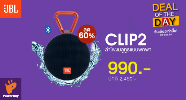 วันเดียวเท่านั้น !! ที่ Power Buy กับลำโพงบลูทูธแบบพกพา JBL Clip2 ลด 60%