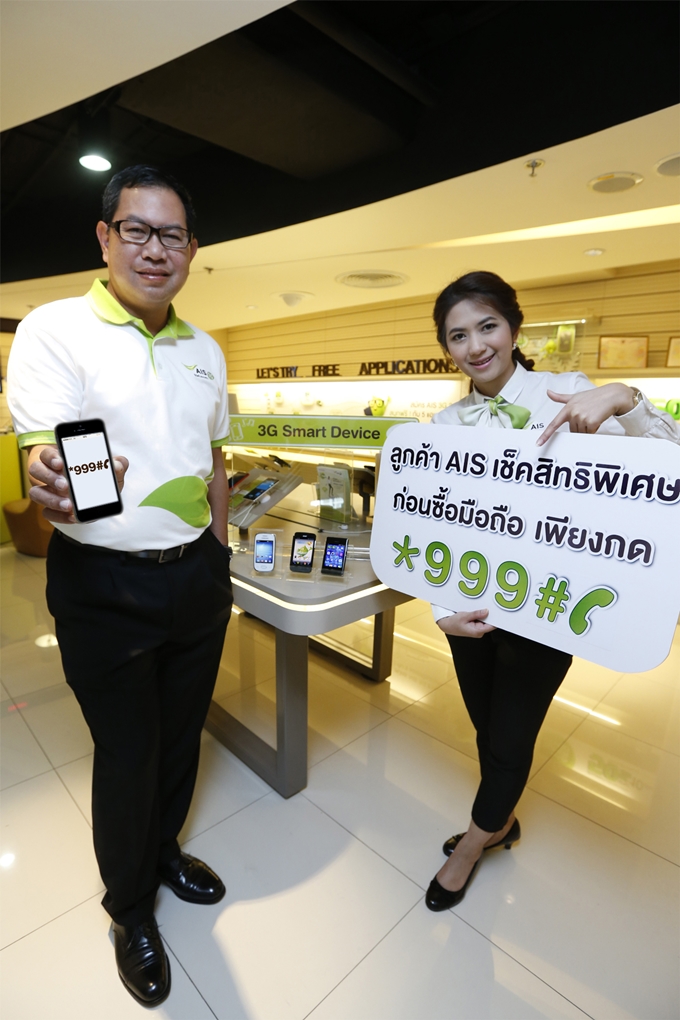 ลูกค้าเอไอเอส ก่อนซื้อมือถือ 3G ตรวจสอบสิทธิพิเศษสุดคุ้มทั้งส่วนลดค่าเครื่อง ค่าโทรและค่าบริการรายเดือนเพียงกด *999# แล้วโทรออก ฟรี!