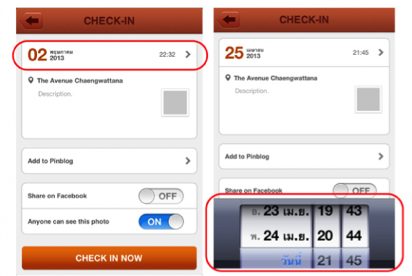 นอกจากนี้ เพื่อเป็นการบันทึกความทรงจำที่แม่นยำ Pinblog จึงออกแบบมาให้คุณ สามารถปรับเปลี่ยนวันเวลาได้อีกด้วย เพียงแคกดเลือกตรงกล่องวันที่และเลื่อนไปยังวันและเวลาที่คุณต้องการ