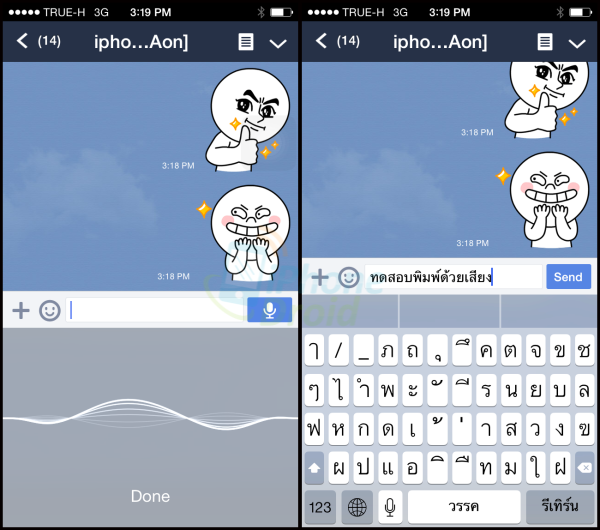 นอกจากนี้ยังสามารถใช้เสียงพูดเพื่อพิมพ์ข้อความต่าง ๆ ได้ทันทีครับ จากที่ทดลองเล่นหลังจากปล่อยให้อัพเดทพบว่าสามารถกดไปที่ไมค์แล้วสามารถพูดภาษาไทยแล้วให้ระบบพิมพ์ได้เลย วิธีการใช้งานนั้นต้องเลือกคีย์บอร์ดให้ตรงกับภาษาที่เราต้องการจะพูดก่อนครับ จากนั้นกดไปที่ไมค์ที่อยู่ตรงด้านข้างปุ่มเปลี่ยนภาษา แล้วก็ออกเสียงพูดได้เลยสามารถพูดเป็นประโยคยาว ๆ ได้ พูดจบให้กด Done ด้วยนะครับระบบก็จะพิมพ์ข้อความที่เราต้องการให้เลย