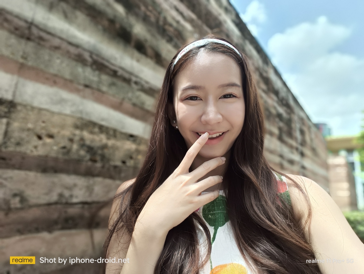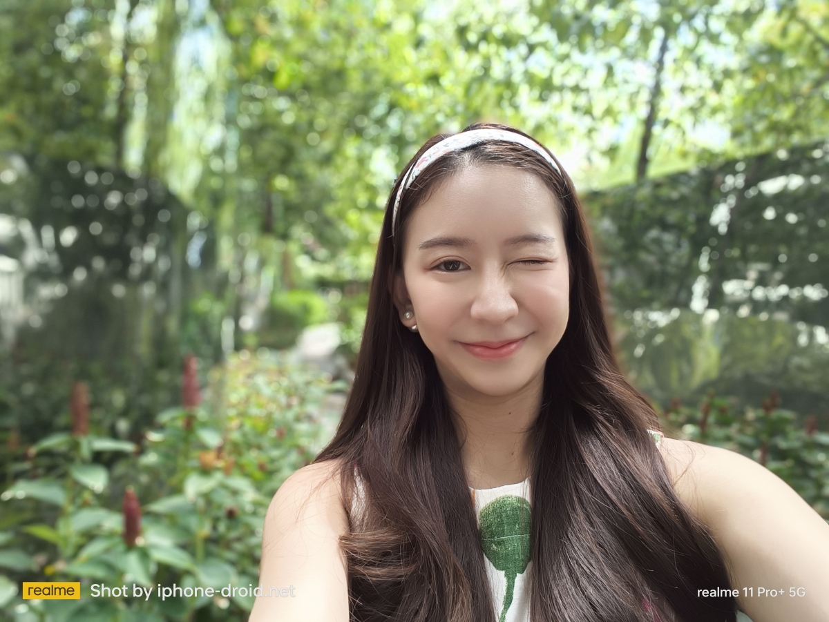 realme 11 Pro+ 5G มาพร้อมกับกล้องหน้าที่มีความคมชัดถึง 32MP พร้อมด้วยมุมกว้างถึง 90 องศา มีให้เลือก 2 ระยะแบบ 1x และ 0.8x ตามความต้องการของบรรยากาศนั้นๆ เลยครับ (หากเราเซลฟี่แนวนอนจะมีการปรับเป็น 0.8x ให้อัตโนมัติ) ที่สำคัญ ยังสามารถเปิดโบเก้เพื่อละลายฉากหลังได้เนียนและแม่นยำมากๆ ในการตรวจจับกรอบใบหน้า และสามารถเปิดบิวตี้ที่ยังคงความเป็นธรรมชาติอยู่และรักษาโทนสีผิวให้สวยงามเหมือนเดิม