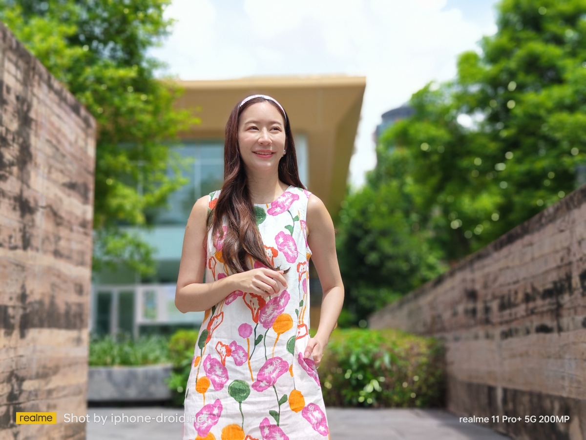 สำหรับเลนส์มุมกว้าง Ultra-Wide Angle จะมีเฉพาะใน realme 11 Pro+ 5G เท่านั้น โดยจะมีมุมกว้าง 112 องศา ซึ่งหากดูแค่ตัวเลขอาจดูไม่กว้างเท่าไหร่ แต่พอได้ลองใช้งานจริงก็ถือเป็นมุมมองที่กำลังพอดี ไม่กว้างเกินไปจนภาพบิดเบี้ยวครับ และในการใช้เลนส์มุมกว้างก็ยังรองรับ AI เพื่อให้ได้แสงและสีสันที่สวยงามเหมือนเลนส์หลักครับ