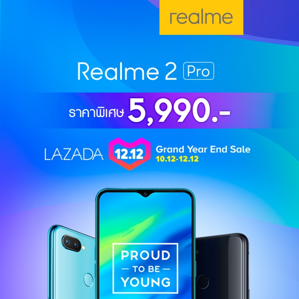 Realme แบรนด์สมาร์ทโฟนน้องใหม่ไฟแรง ซึ่งเพิ่งเปิดตัวอย่างเป็นทางการในประเทศไทยเมื่อวันที่ 3 ธันวาคมที่ผ่านมานี้ ได้ประกาศจำหน่าย Realme 2 Pro 4+64GB ราคาพิเศษอีกครั้ง จากกระแสตอบรับอย่างดีเยี่ยมของ Realme 2 Pro 4+64GB ที่ได้มีการจำหน่ายในราคาพิเศษผ่านทาง Lazada ไปเมื่อช่วงเทศกาลช้อปปิ้ง 11.11 วันที่ 7 และ 11 พฤศจิกายน 2561 ที่ผ่านมาโดยในวันที่ 7 นั้นได้จำหน่ายหมดอย่างรวดเร็วภายในเวลาเพียงแค่ 10 วินาทีนับตั้งแต่เปิดจำหน่าย