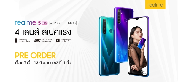 realme 5 I 5Pro กับสโลแกน “Leap to quad camera สู่การพัฒนาที่เหนือชั้นด้วยกล้องหลัง 4 ตัว” เปิดPre – order realme 5Pro แล้ว ให้คุณพร้อมเป็นเจ้าของ realme 5 series ได้ก่อนใคร