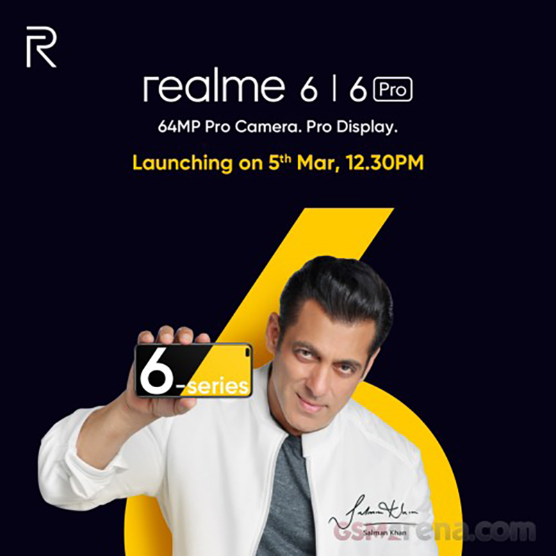 หลังจากที่มีข่าวไปในช่วงเช้าไม่นาน ตอนนี้ realme ได้ประกาศแล้วว่า realme 6 และ 6 Pro จะเปิดตัวในวันที่ 6 มีนาคมนี้ ที่ได้ Salman Khan นักแสดง Bollywood มาเป็นพรีเซนเตอร์