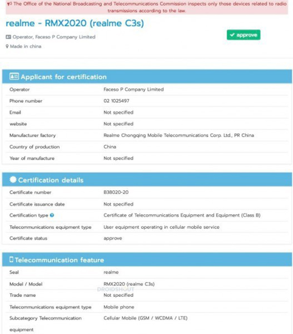 นอกจากนี้ ก็ยังมีรุ่น realme C3 และ C3s ได้ผ่านการรับรองกสทช.ที่ไทยและสิงคโปร์แล้วเช่นเดียวกัน แต่เรื่องของวันเปิดตัวยังคงต้องติดตามในเร็วๆ นี้