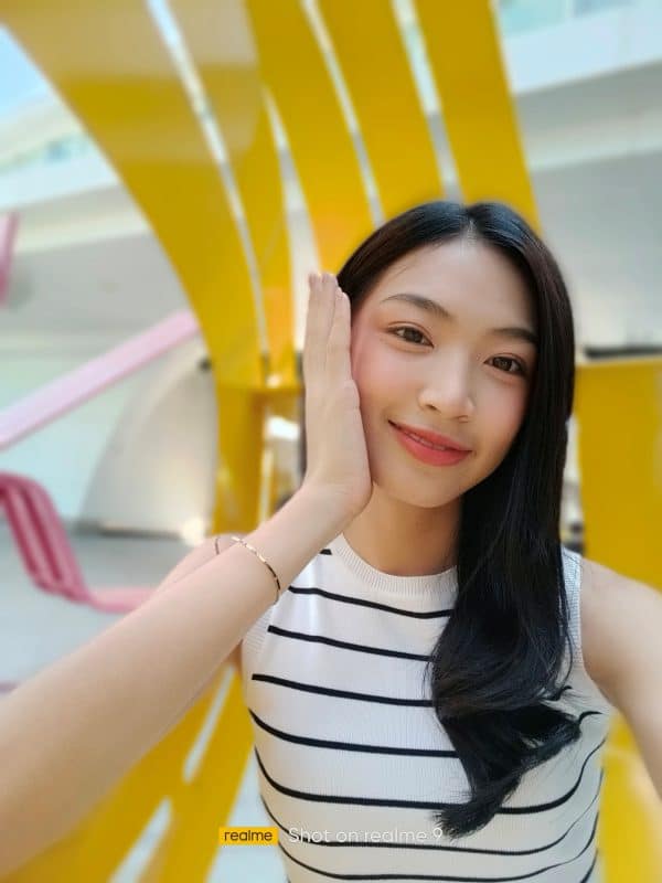สำหรับกล้องหน้าของ realme 9 ใครที่เซลฟี่บ่อยๆ ต้องชอบเลยครับ เพราะความคมชัด ความเนียนของผิวบนใบหน้าทำได้ธรรมชาติมากๆ รวมถึงการเบลอหลังก็ตัดขอบได้ดีเลยทีเดียว