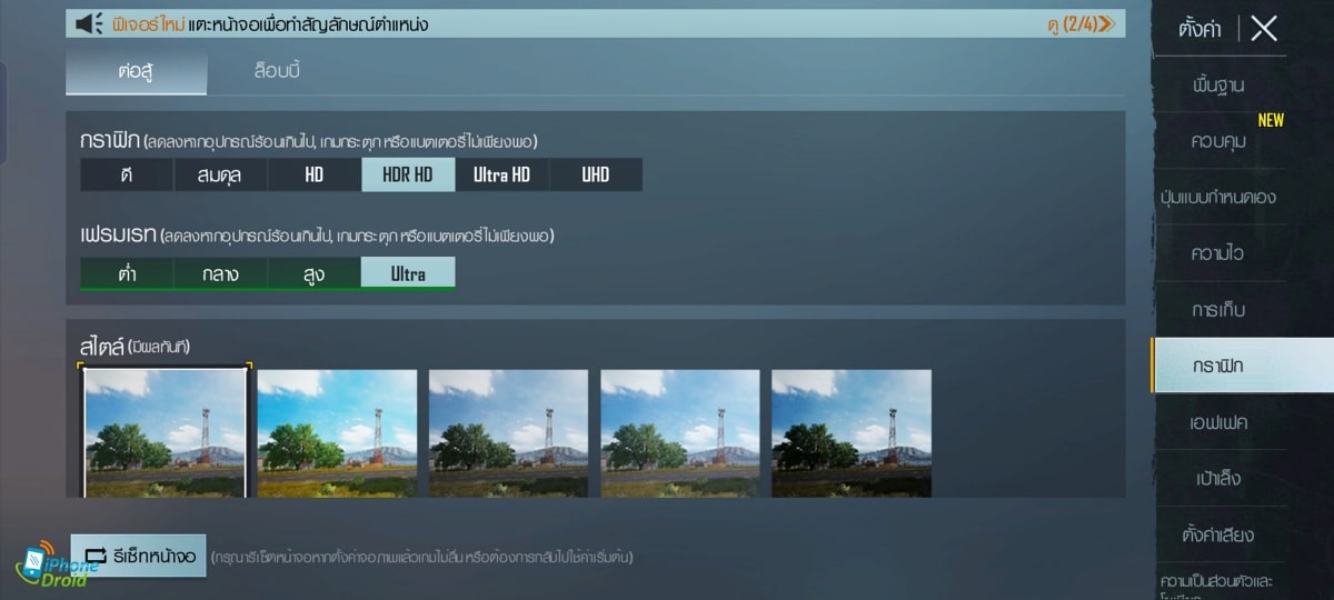 ขอเริ่มกันด้วย PUBG Mobile กันก่อนเลยครับ เพราะหนึ่งในเกมที่รองรับเทคโนโลยีการสั่นแบบ 4 มิติเสริมความสมจริงเวลาเล่นได้มากขึ้นในช่วงเวลาของการกดยิงศัตรู ซึ่งเราจะรู้สึกได้เลยว่าจะเป็นการสั่นที่ต่างจากเกมอื่นๆ โดยจุดนี้ต้องชื่นชมเทคโนโลยีแกนสั่นแบบ X-axis Tactile Engine (เฉพาะ realme 9 Pro+ จะมีเท่านั้นนะ) ส่วนการปรับกราฟิกใน realme 9 Pro Series จะเปิดกราฟิกได้ในระดับ HDR HD และเฟมเรท Ultra ช่วยเล่นได้ลื่นๆ ผสานหน้าจอ 90Hz เข้าไปอีก !