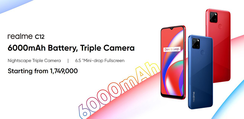realme C12 มีให้เลือกทั้งหมด 2 สี ได้แก่ Marine Blue และ Coral Red โดยมีราคา 1,899,000 รูเปียห์ หรือประมาณ 4,000 บาท และเริ่มวางจำหน่ายอย่างเป็นทางการในวันที่ 18 สิงหาคมนี้