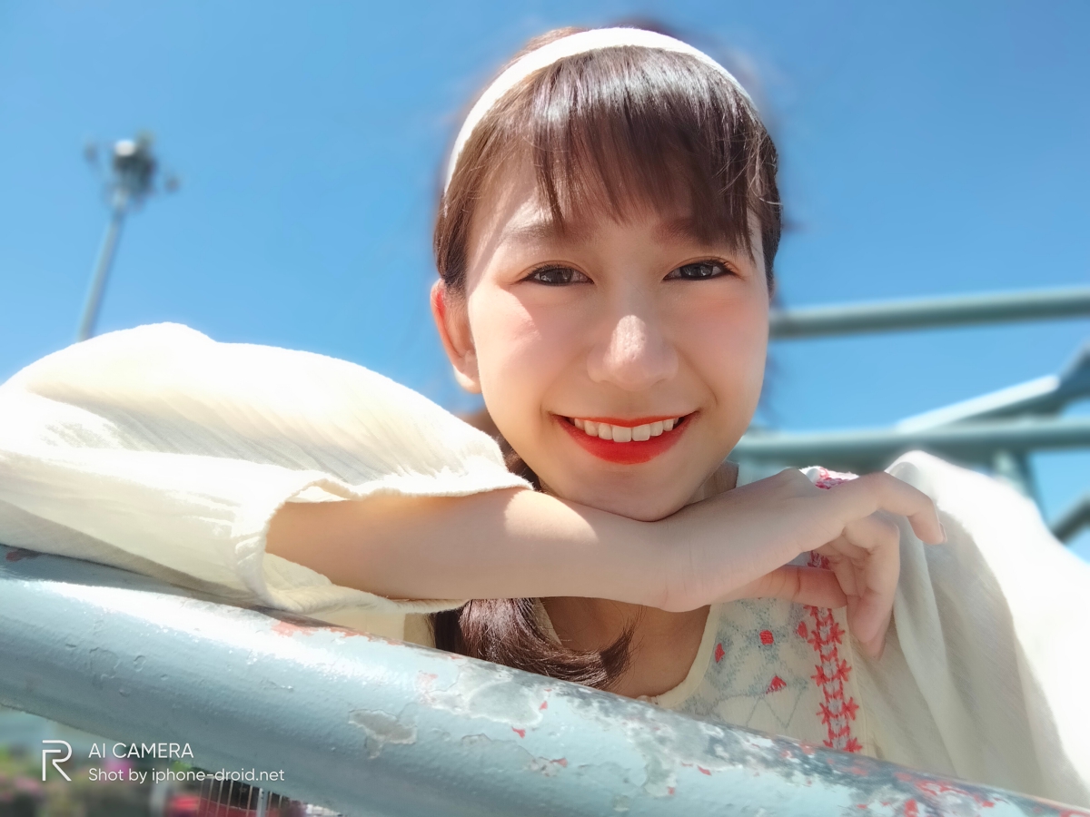 AI Beauty ใน realme ทุกรุ่นต้องบอกว่าทำได้ดีมากๆ ครับ ซึ่งรวมถึงรุ่นนี้เช่นกัน โดยใบหน้าจะมีความเนียน ดูเป็นธรรมชาติและไม่โดดจนเกินไป แถมใบหน้าก็มีความสว่างแม้ถ่ายในที่แสงจ้า