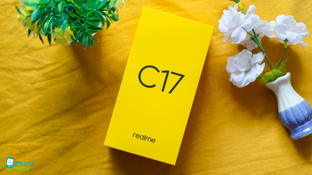 เห็นสีเหลืองมาไกลๆ ก็ต้องเป็นกล่องสมาร์ทโฟนของ realme แน่นอนครับ โดยตรงกลางจะเป็นอักษรสีดำชื่อรุ่น “realme C17” ขณะที่ด้านล่างจะเป็นชื่อแบรนด์อย่าง “realme” ชัดเจน