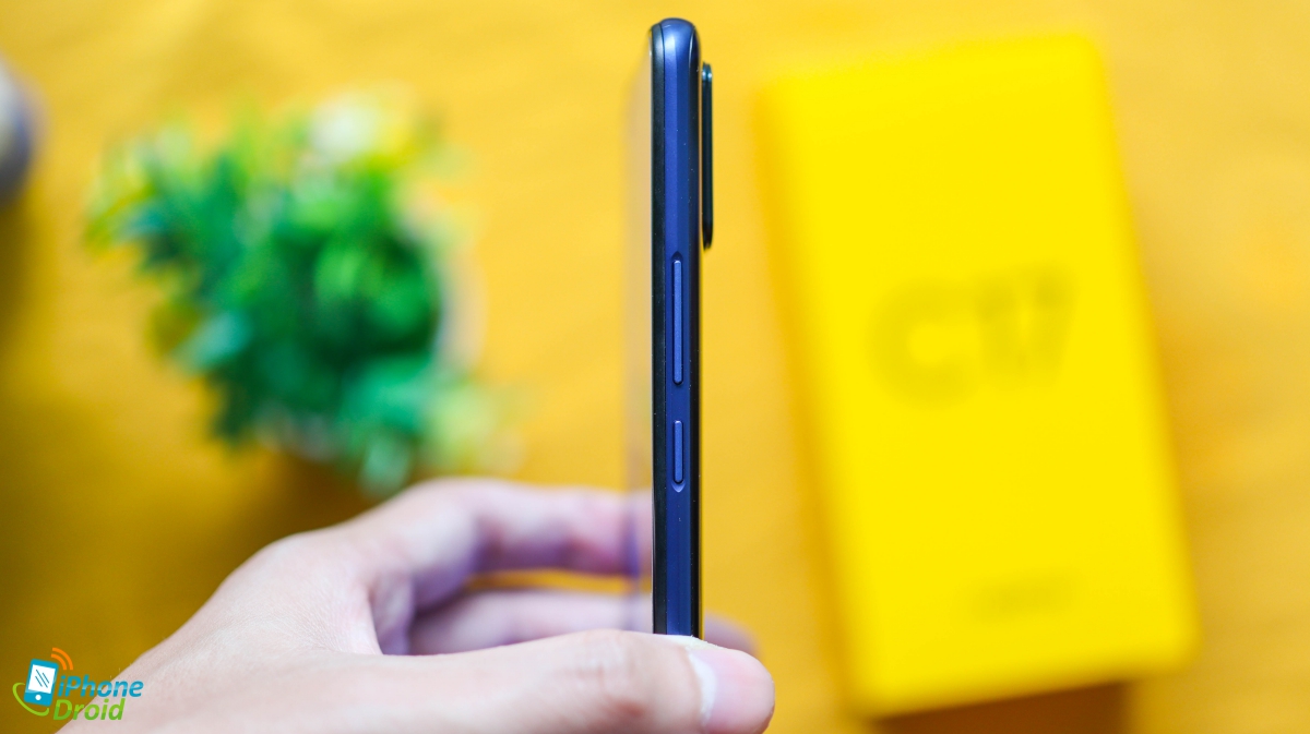 ดีไซน์ตัวเครื่องของตระกูล C Series จาก realme ยังคงทำออกมาได้อย่างงดงามเช่นเคย โดย realme C17 มีการเน้นลวดลายที่ได้แรงบันดาลใจจาก Cat’s Eye หรืออัญมณีล้ำค่า “เพชรตาแมว” มีความแวววาวและน่าค้นหา โดยสีที่เราได้มาเป็นสีน้ำเงินเข้ม Navy Blue ที่สะท้อนแสงออกมาจากเลนส์กล้องคล้ายกับพื้นผิวน้ำในมหาสมุทรลึก ส่วนอีกสีที่มีให้เลือกจะเป็นสีน้ำเงินอ่อน Lake Green ที่เล่นลวดลายคล้ายกัน แต่จะมีการเคลือบแบบ AG ทำให้ได้พื้นผิวด้าน ติดรอยนิ้วมือได้ยากขึ้น