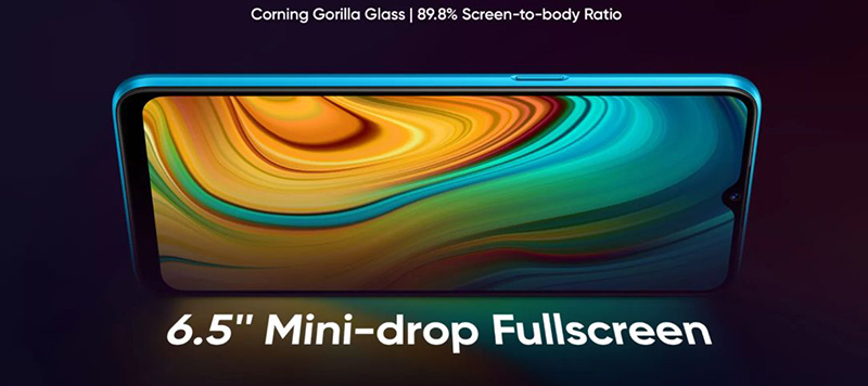 realme C3 จะมาพร้อมหน้าจอแสดงผล Mini-Drop ขนาด 6.5 นิ้ว ความละเอียด HD+ และครอบทับด้วยกระจก Gorilla Glass (ยังไม่ได้ระบุรุ่น)