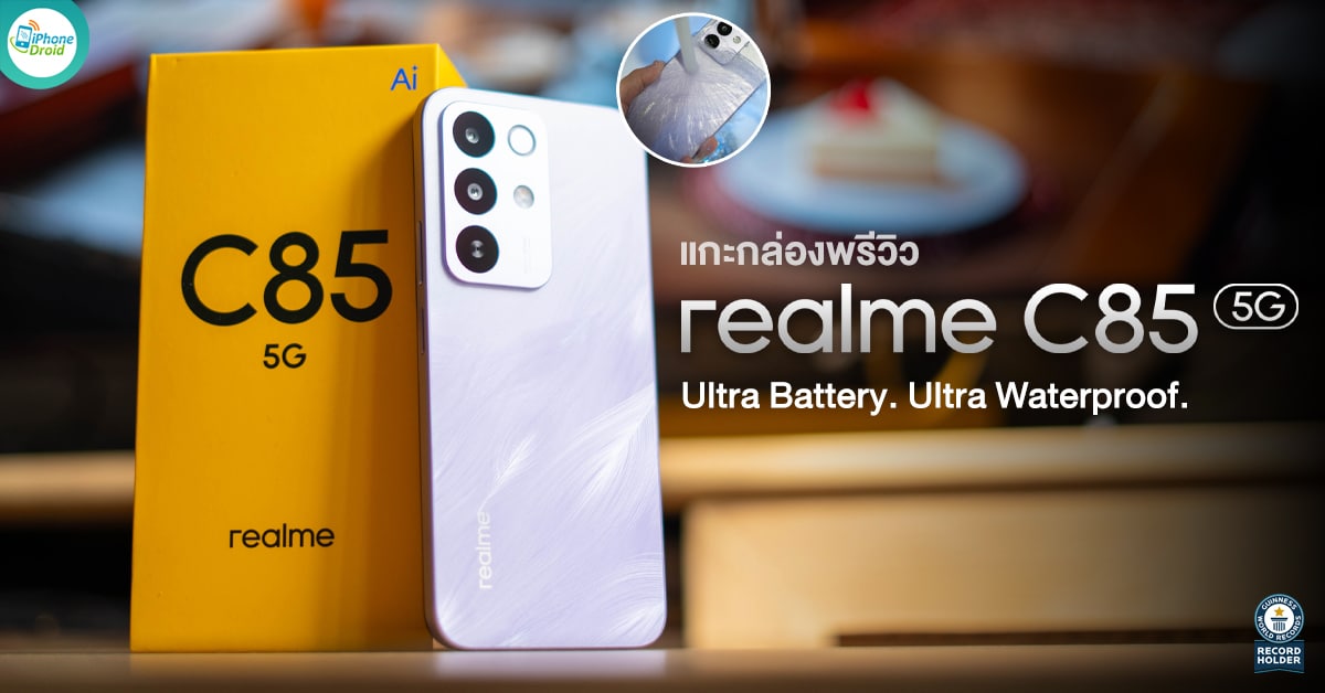 มาแกะกล่อง realme C85 5G สมาร์ตโฟนที่ขึ้นชื่อว่าเป็นสมาร์ตโฟนที่ทนทานขั้นสูงสุดในยุคนี้กันครับ ชูโรงด้วยการมาพร้อมกับความทนทานระดับ Ultra ทั้งแบตเตอรี่ Ultra และกันน้ำ Ultra พร้อมให้ใช้งานได้ทุกสถานการณ์ของจริง วันนี้เรามาพรีวิวให้ชมกันแบบเรียกน้ำย่อยก่อน