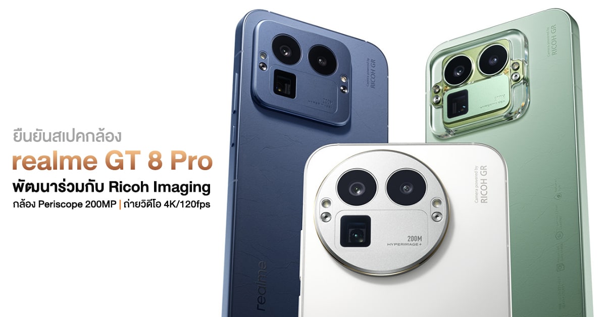 realme GT 8 Series เตรียมเปิดตัวทางการวันที่ 21 ตุลาคมนี้ในประเทศจีน และอย่างที่เราทราบซีรีส์นี้จะพัฒนากล้องร่วมกับ Ricoh Imaging แบรนด์กล้องสัญชาติญี่ปุ่น ที่เราได้ร่วมทดสอบกันมาแล้วว่าสุดยอดแค่ไหน ล่าสุด realme ก็ได้เผยสเปคกล้องเบื้องหลังความดีงามนี้ออกมาเพิ่มเติมแล้วครับ!