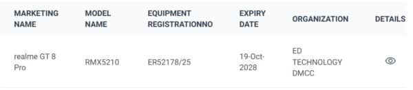 realme GT 8 Pro ที่ผ่านรับรองมาในโมเดลรุ่น RMX5210 ซึ่งเป็นการยืนยันการเปิดตัวของ Global อย่างแน่นอนในเร็วๆ นี้ แม้ว่าสเปคฝั่งของ Global จะยังไม่มีหลุดออกมาว่าจะเหมือนกับในจีน 100% เลยหรือไม่