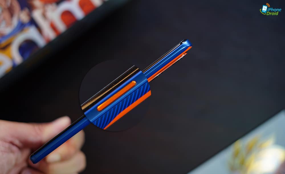 ที่รอบ ๆ ตัวเครื่องก็ยังมีโลโก้ realme x Dragon Ball Z ชัดเจน ด้านบนมีสโลแกนของ realme อย่าง Dare to Leap และมีโกคูทั้ง 3 ร่างอยู่อีกด้วย แหม่…นี่มัน Goku Edition ชัด ๆ