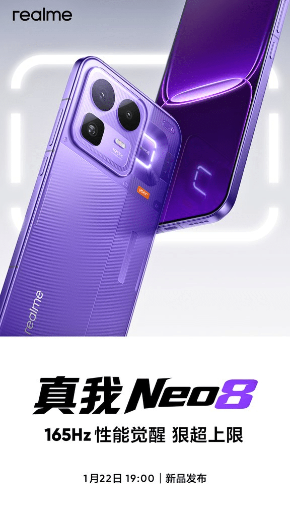 realme ได้ประกาศยืนยันการเปิดตัว realme Neo 8 สมาร์ทโฟนตัวท็อปรุ่นใหม่ในประเทศจีนแล้ว เป็นวันที่ 22 มกราคมนี้ครับ