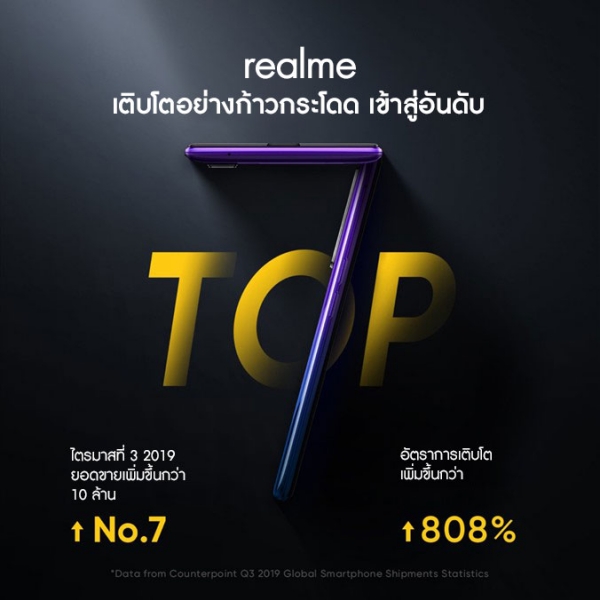 เมื่อเดือนตุลาคม 2562 realme ได้มีการประกาศว่ามีผู้ใช้เพิ่ม