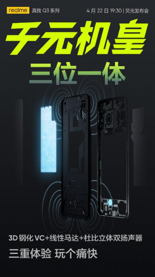 realme เตรียมเปิดตัว realme Q3 Series ในประเทศจีนวันที่ 22 เมษายนนี้ พร้อมยืนยันสเปคและจุดเด่นออกมาแล้วครับ โดยรุ่นนี้จะใช้หน่วยประมวลผล Dimensity 1100 หน้าจอ 120Hz และมีระบบระบายความร้อน 3D VC liquid-cooled ด้วย