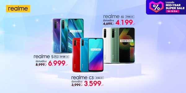 - realme 6i ‘ขุมพลังเต็มขั้น’ ความจุ 3+64 GB ราคาพิเศษเพียง 4,199 บาท จากปกติ 4,699 บาท