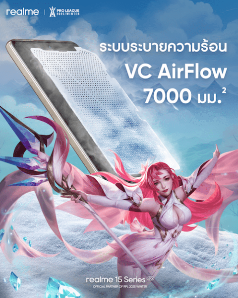 ด้วยพลังของเทคโนโลยีและความมุ่งมั่นในการยกระดับประสบการณ์เกมมิ่งให้เข้าถึงคนรุ่นใหม่ realme เดินหน้าสนับสนุนวงการอีสปอร์ตไทยอย่างต่อเนื่อง การร่วมเป็นส่วนหนึ่งของ RoV Pro League 2025 Winter สะท้อนวิสัยทัศน์ของแบรนด์ที่พร้อมผลักดันเกมเมอร์ให้ปลดปล่อยศักยภาพอย่างเต็มที่ ทั้งในสนามแข่งขันและในชีวิตจริง พบกันที่ บูธ realme (ก่อนทางเข้าเช็กอินงาน) วันที่ 25–26 ตุลาคม 2568 ณ Bitec Live ไบเทค บางนา ตั้งแต่เวลา 10.00 น. เป็นต้นไป เพื่อมาร่วมเชียร์ ร่วมเล่น และสัมผัสพลังเกมมิ่งระดับโปรลีกจาก realme 15 Series 5G สมาร์ตโฟนที่เร็ว แรง และลื่นไหลในแบบที่เกมเมอร์ตัวจริงต้องมี
