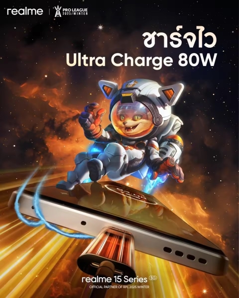 ด้วยพลังของเทคโนโลยีและความมุ่งมั่นในการยกระดับประสบการณ์เกมมิ่งให้เข้าถึงคนรุ่นใหม่ realme เดินหน้าสนับสนุนวงการอีสปอร์ตไทยอย่างต่อเนื่อง การร่วมเป็นส่วนหนึ่งของ RoV Pro League 2025 Winter สะท้อนวิสัยทัศน์ของแบรนด์ที่พร้อมผลักดันเกมเมอร์ให้ปลดปล่อยศักยภาพอย่างเต็มที่ ทั้งในสนามแข่งขันและในชีวิตจริง พบกันที่ บูธ realme (ก่อนทางเข้าเช็กอินงาน) วันที่ 25–26 ตุลาคม 2568 ณ Bitec Live ไบเทค บางนา ตั้งแต่เวลา 10.00 น. เป็นต้นไป เพื่อมาร่วมเชียร์ ร่วมเล่น และสัมผัสพลังเกมมิ่งระดับโปรลีกจาก realme 15 Series 5G สมาร์ตโฟนที่เร็ว แรง และลื่นไหลในแบบที่เกมเมอร์ตัวจริงต้องมี