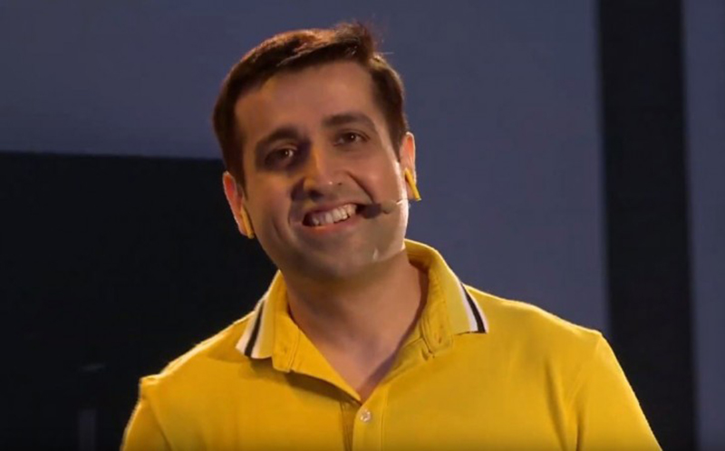 โดย Madhav Sheth ก็ได้หยิบกล่องหูฟังออกมาที่ดูจะคล้ายกับตัวเคสของ AirPods ออกมา พร้อมกับดีไซน์ของตัวหูฟังที่เป็นแบบ In-Ear ในสีเหลืองที่เป็นสีสัญลักษณ์ของ realme