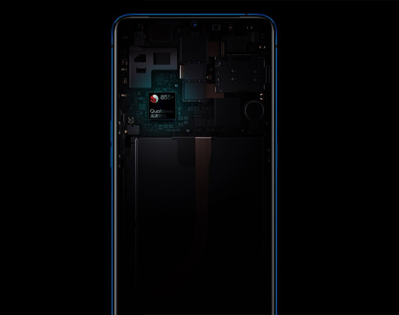 ภายในมาพร้อมกับหน่วยประมวลผลตัวท็อปสุด ณ ตอนนี้อย่าง Snapdragon 855+ มีความจุ 3 รุ่น ได้แก่ RAM 6GB + ROM 64GB (UFS 2.1), RAM 8GB + ROM 128GB (UFS 3.0) และ RAM 12GB + ROM 256GB (UFS 3.0) ซึ่งส่วนประกอบด้านในยังมาพร้อมกับระบบระบายความร้อนแบบ Vapor chamber และมีแบตเตอรี่ความจุ 4000mAh รองรับ SuperVOOC 50W สามารถชาร์จได้ถึง 80% ในเวลาเพียง 30 นาที