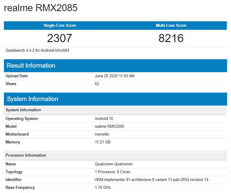 realme X3 จะมาพร้อมกับ RAM 12GB และรันบน Android 10 โดยคะแนนการทดสอบทำ Single-Core ได้ที่ 2,307 และ Multi-Core ที่ 8,216 ซึ่งในจุดนี้คาดการณ์ว่า realme X3 อาจไม่ได้ใช้หน่วยประมวลผล Snapdragon 855+ หรือ Snapdragon 865 ครับ เพราะคะแนน Multi-Core ยังไม่เกิน 10,000 คะแนน