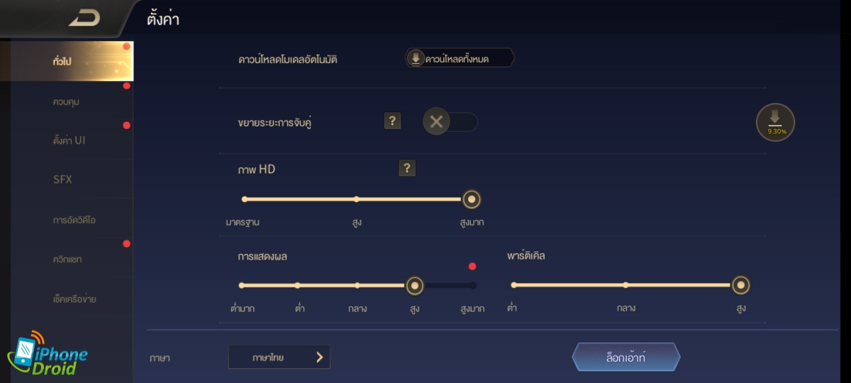 มากันที่เกมสุดฮิตอย่าง ROV นั้นสามารถเปิดการแสดงผลที่ระดับสูง ขณะที่ภาพ HD และเฟรมเรทสูงจะเปิดได้แบบสูงสุดครับ โดยทดสอบการเล่นในโหมด 5 VS 5 สามารถเล่นได้นิ่งๆ เฟรมเรทไม่มีดรอปตั้งแต่เริ่มเกม ช่วงที่บวกใส่สกิลกันเยอะ หรือช่วงท้ายเกมก็ไม่มีอาการสะดุดให้เห็นครับ