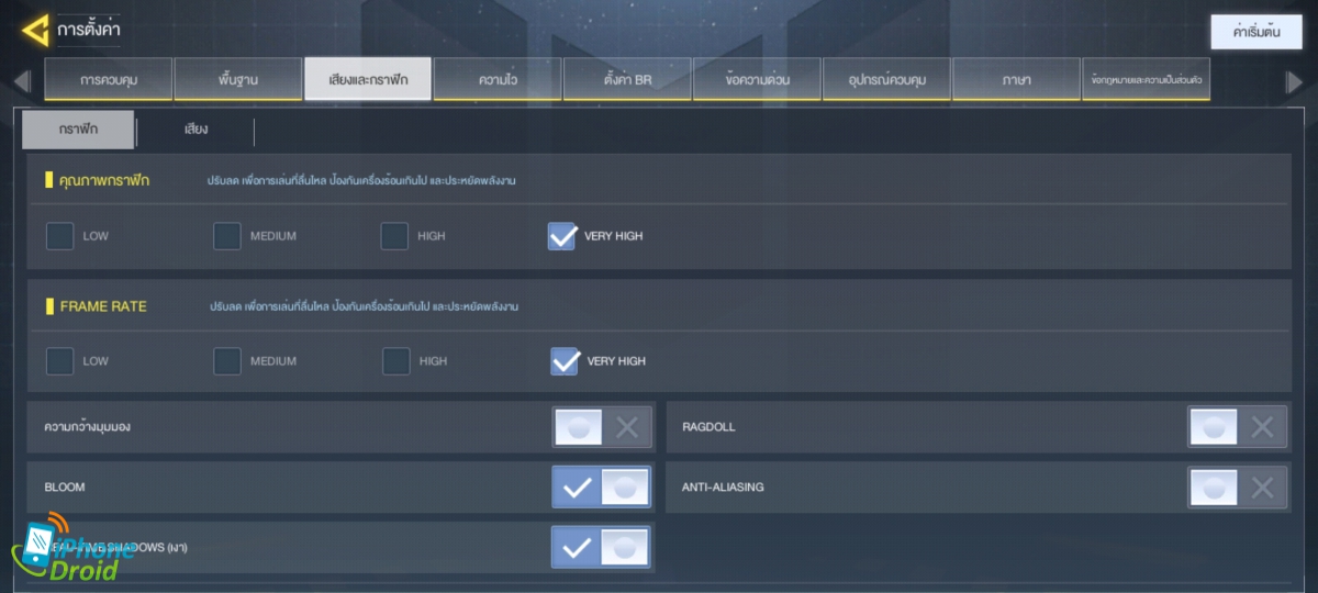 มาต่อที่เกม Call of Duty: Mobile สามารถเล่นเกมนี้ได้แบบกราฟิกระดับสูงแบบ Very High ทั้งหมดครับ แล้วเล่นในโหมด 100 คน Battle Royale ได้แบบสบายๆ ครับ เรื่องการสัมผัสก็ทำได้ลื่นมากๆ ด้วยหน้าจอแบบ 120Hz แล้วเรื่องการกดยิงก็แทบไม่มีอาการดีเลยืให้เห็นครับ