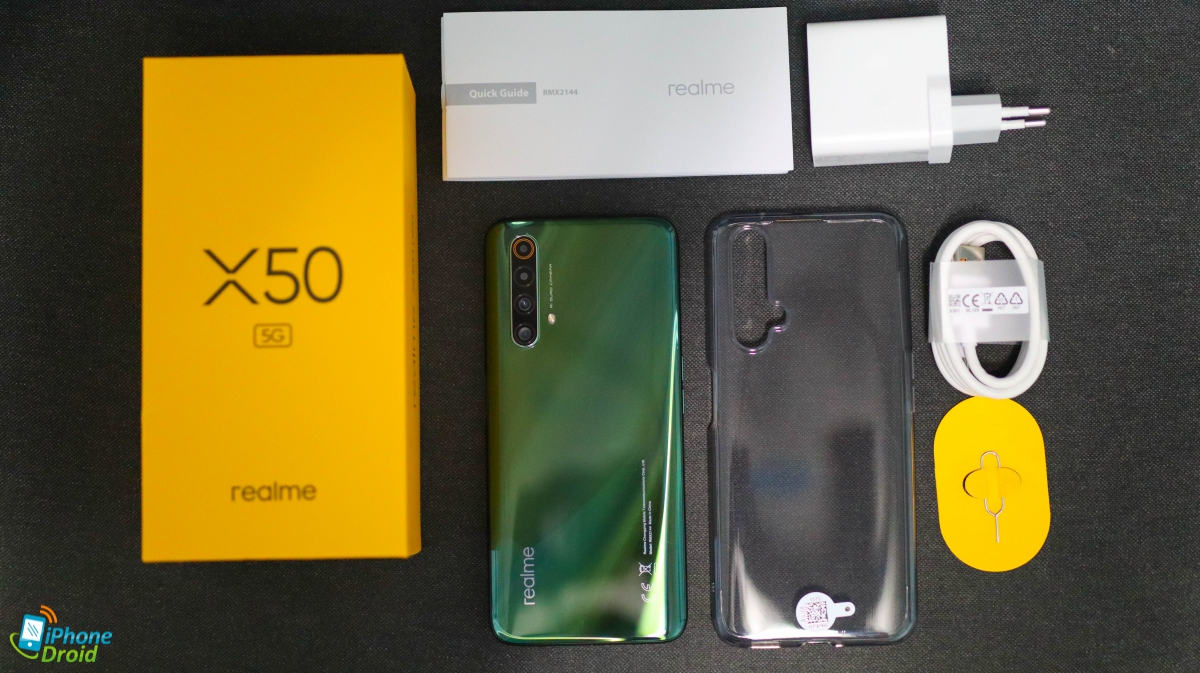 ตัวกล่องมาในสีเหลืองที่เห็นแล้วรู้ทันทีว่าเป็น realme พร้อมมีชื่อรุ่น realme X50 5G ชัดเจนที่หน้ากล่องครับ ซึ่งอุปกรณ์ในกล่องมีดังนี้