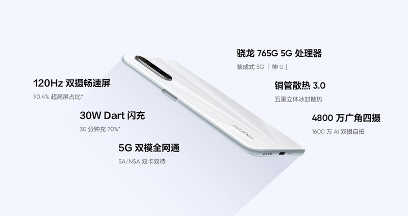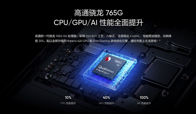 ภายในใช้หน่วยประมวลผล Snapdragon 765G, RAM 6/8GB + ROM 128GB มีแบตเตอรี่ 4200mAh รองรับ Dart Charging 30W
