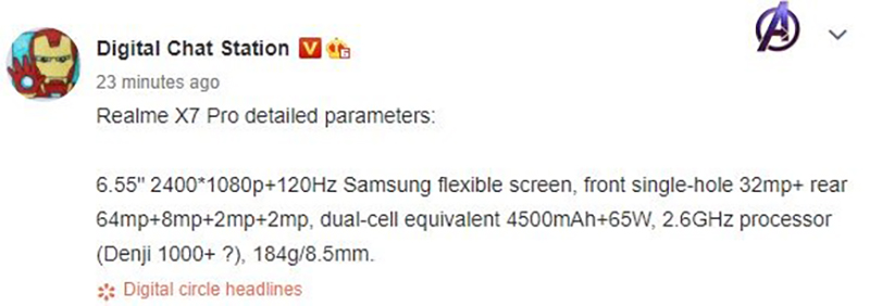 realme เตรียมที่จะเปิดตัว realme X7 Series ในวันที่ 1 กันยายนนี้ โดยมี 2 รุ่น ได้แก่ realme X7 และ realme X7 Pro ล่าสุด ก็มีสเปคหลุดของรุ่นพี่ออกมาจากทาง Weibo แล้ว