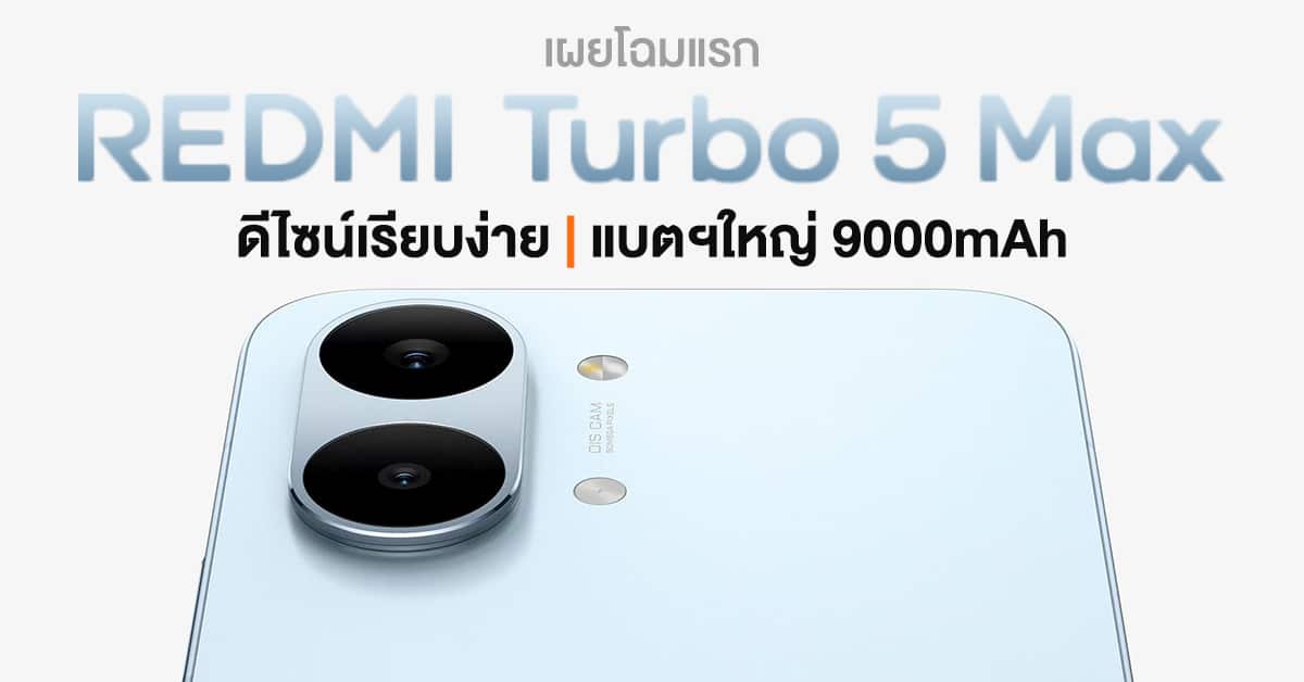 REDMI Turbo 5 Max ยืนยันแล้วว่าจะเป็นรุ่นแรกที่ใช้ชิป Dimensity 9500s และก็เริ่มทยอยปล่อยทีเซอร์แง้มถึงความแรงเรื่อยมา ล่าสุดก็เผยดีไซน์ทางการออกมาแล้วครับ แอบเรียบง่ายกว่าที่คิด!